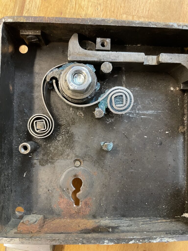 Oftmals sind keine Ferdern für alte Schlösser mehr erhältlich. Dann werden sie repariert oder neu hergestellt. Dazu verwende ich Federstahl, entweder als Bandstahl oder Federdraht in diversen Abmessungen. Mit viel Fantasie, Erfahrung und manchmal auch Kraft.